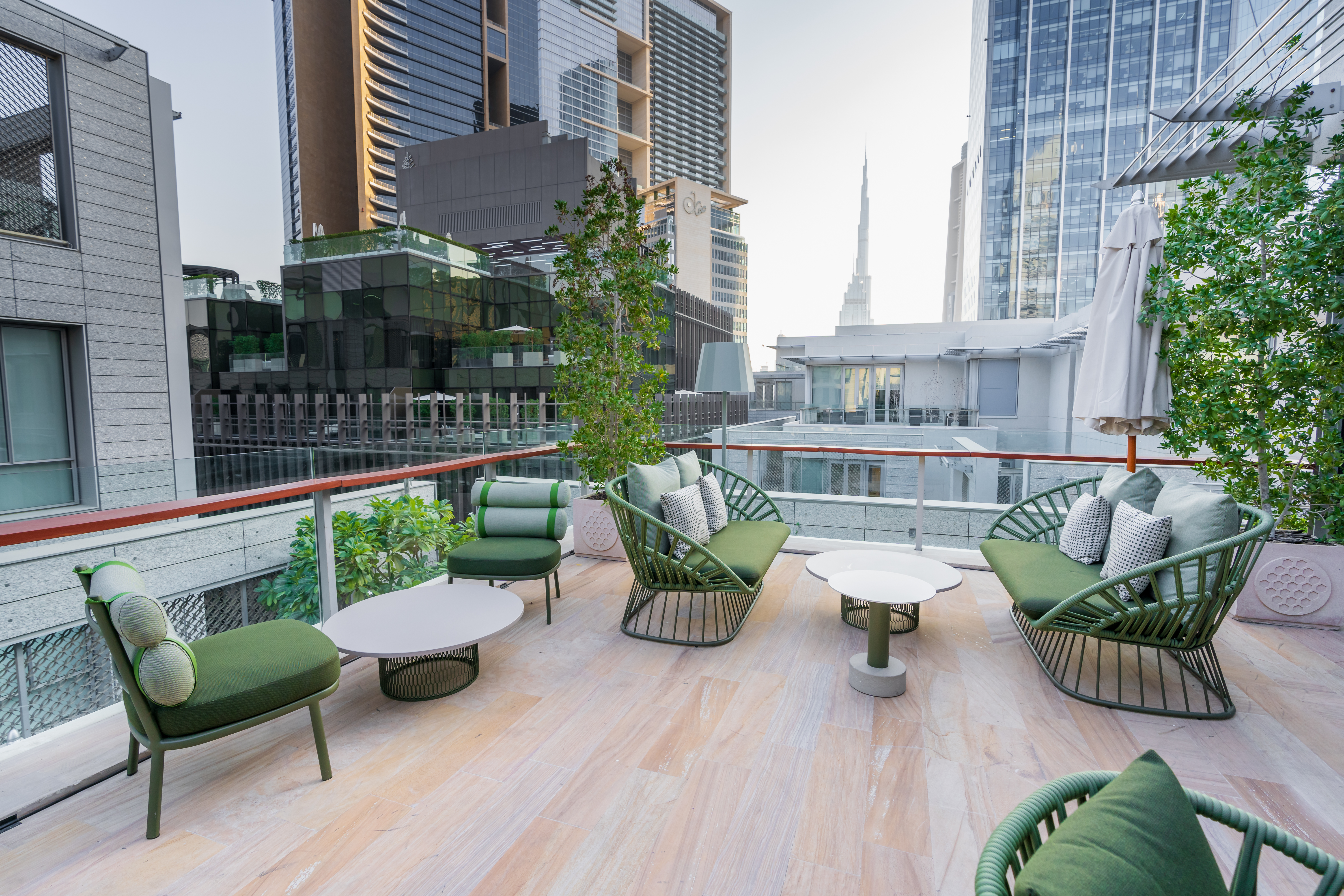 On the rooftop of Capital Club in DIFC, this intimate terrace offers the perfect location for alfresco events overlooking the majestic Burj Khalifa.